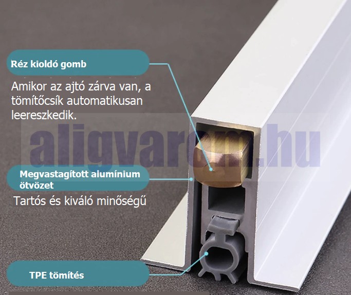 Az automata küszöb kiváló légzáró, füstgátló, fényzáró és hanggátló tulajdonságokkal rendelkezik.