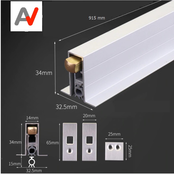 Automata küszöb, ajtó automata tömítés szélfogó 915x32,5x34 mm süllyeszthető kivitel