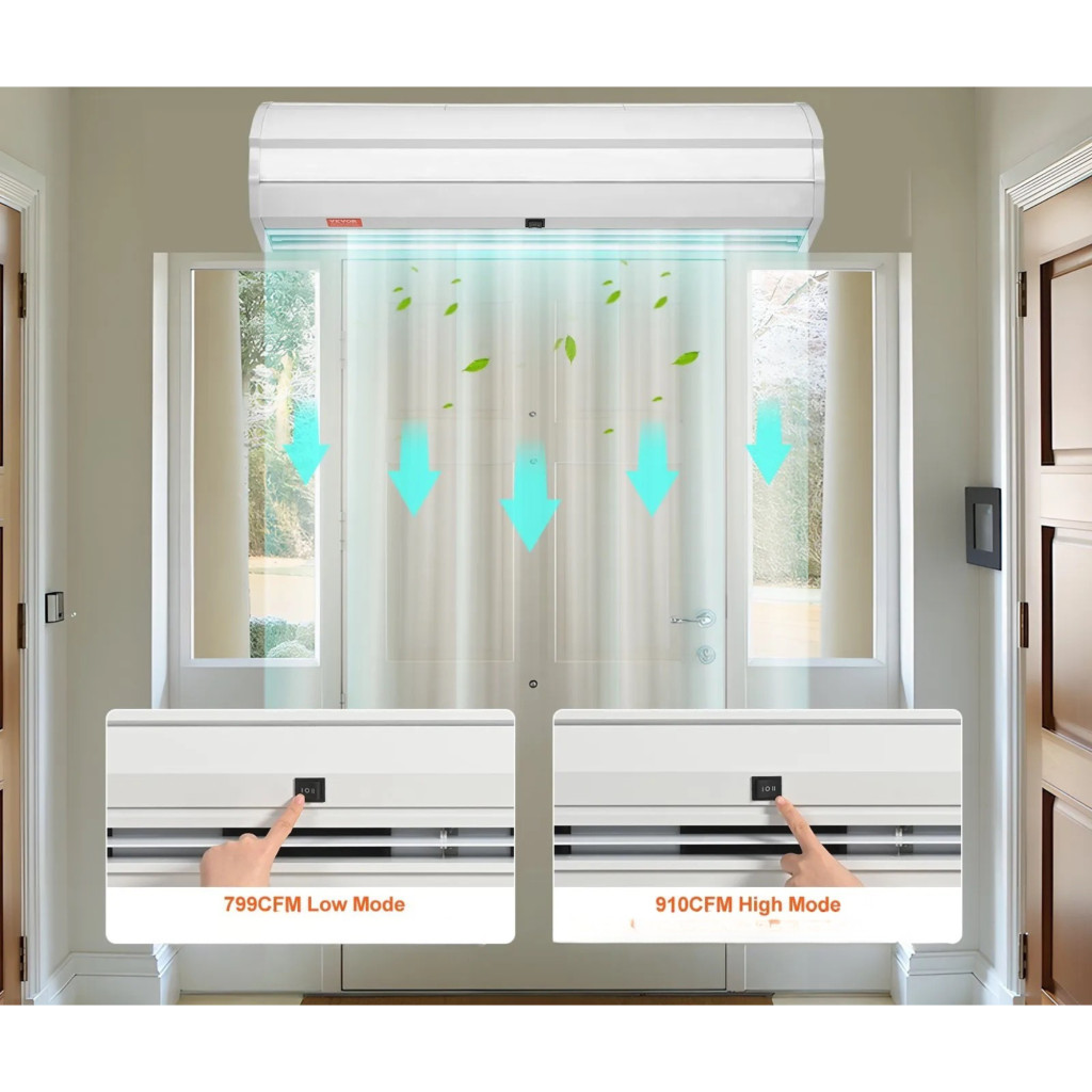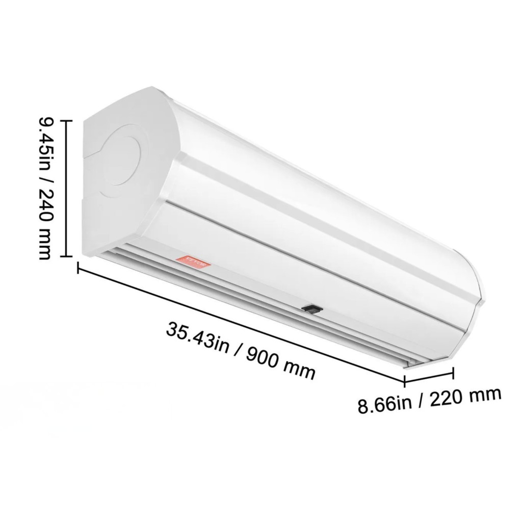 Ez a 0,9 méteres beltéri ajtó légfüggöny ideális választás kisebb bejáratokhoz, üzletekhez, irodákhoz, éttermekhez vagy otthoni használatra, ahol fontos a huzatmentes, tiszta beltéri levegő megőrzése. A falra szerelhető kialakítás és a hatékony légáram láthatatlan levegőfalat hoz létre, amely nyitott ajtó mellett is védi a belső teret a külső hatásoktól.
