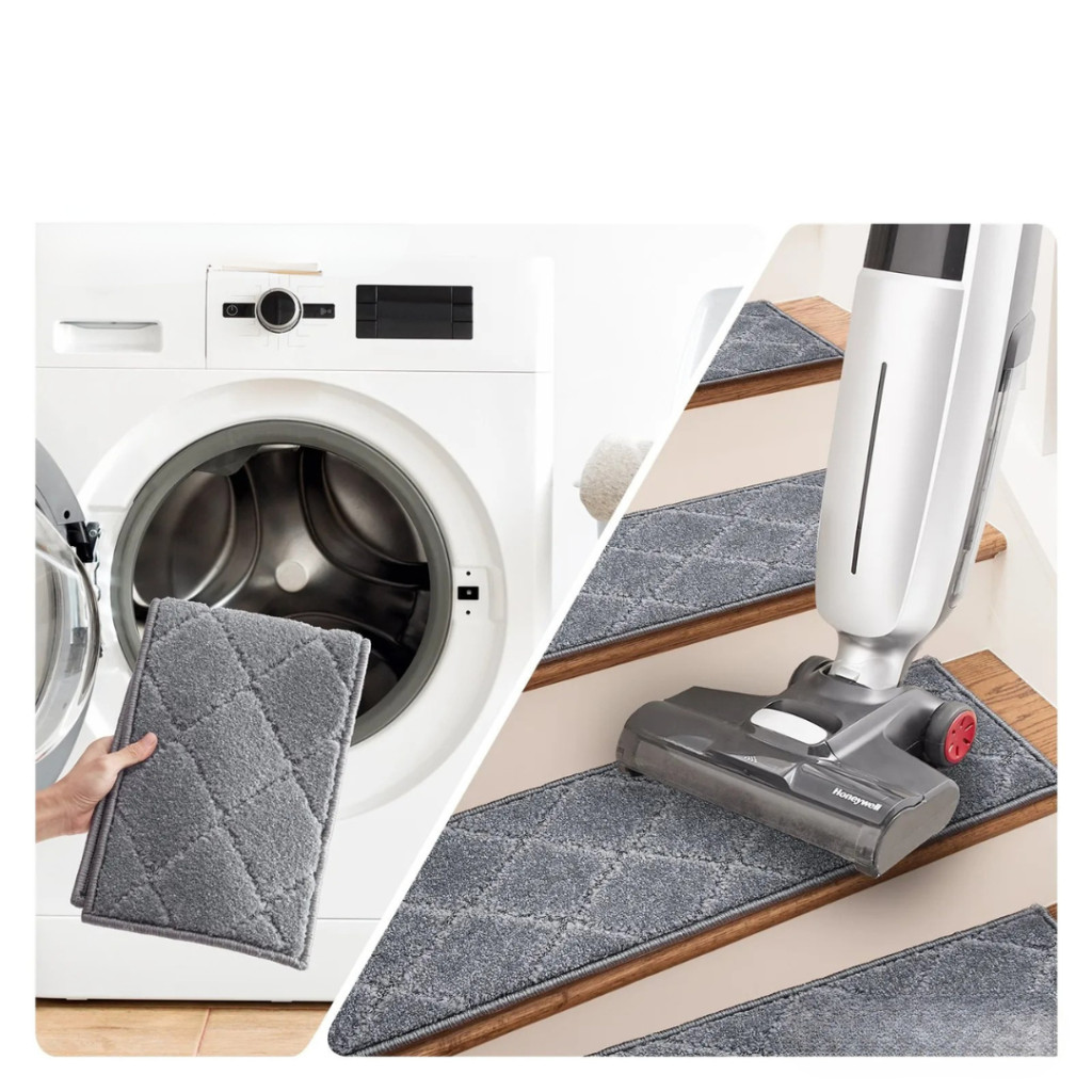 A szőnyegek TPE hátoldala erős tapadást nyújt, így megakadályozza az elcsúszást. Nem szükséges ragasztó vagy szalag, így könnyedén eltávolíthatók, és nem hagynak nyomot a lépcsőn. Ez a megoldás különösen hasznos gyermekekkel, idősekkel vagy háziállatokkal élő családok számára.