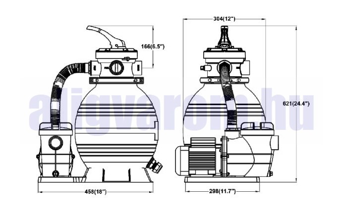 Szűrőhomok: 19 kg 0,45-0,85 mm szemcseméret, nem tartozék