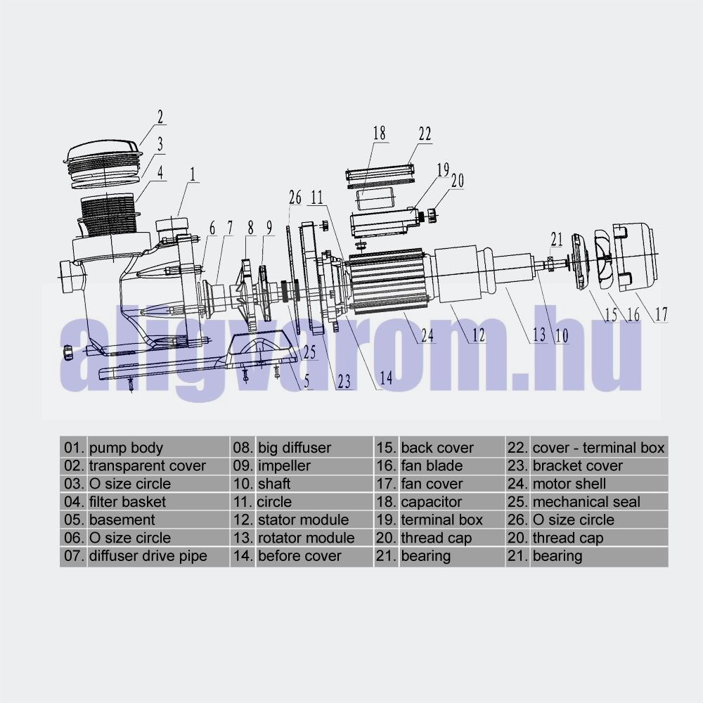 Medence vízforgató szivattyú, önfelszívó 1300W 28.800 l/óra akár pezsgőfürdők forgatására is. jakuzzi, jacuzzi