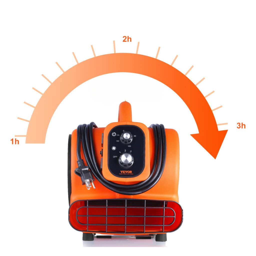 A három választható sebességfokozat – 700, 800 és 1000 CFM – révén a légáram könnyedén az igényeihez igazítható. A négy különböző fúvószög (0°, 20°, 45°, 90°) lehetővé teszi, hogy a levegőt pontosan oda irányítsa, ahol arra szükség van. A 3 órás időzítő pedig gondoskodik arról, hogy a készülék automatikusan leálljon, így Ön nyugodtan pihenhet vagy távozhat a helyiségből.