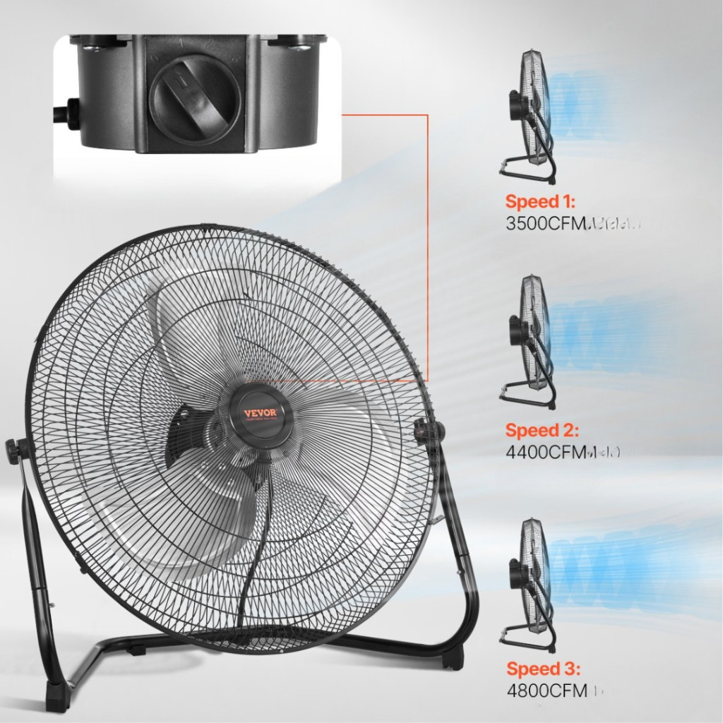 Ipari padló- és fali ventilátor 508 mm-es lapátátmérővel – 4800 CFM légszállítás, 3 fokozat, 360°-ban dönthető, 72 W teljesítmény, alacsony zajszinttel