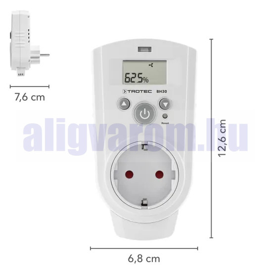 A hygrométer érzékeli a környezet páratartalmát és a konnektorba illesztett készüléket a beállított értéknek megfelelően működteti.