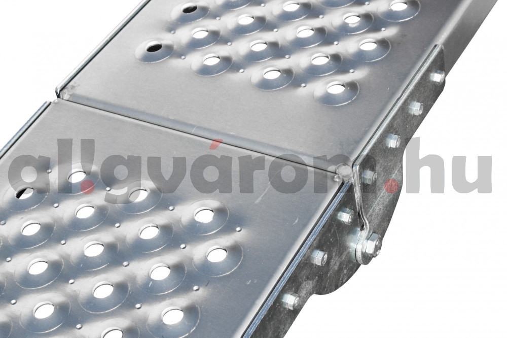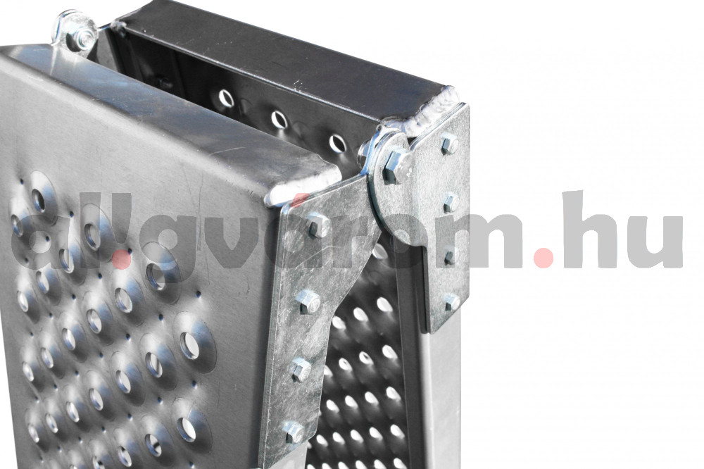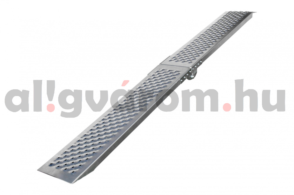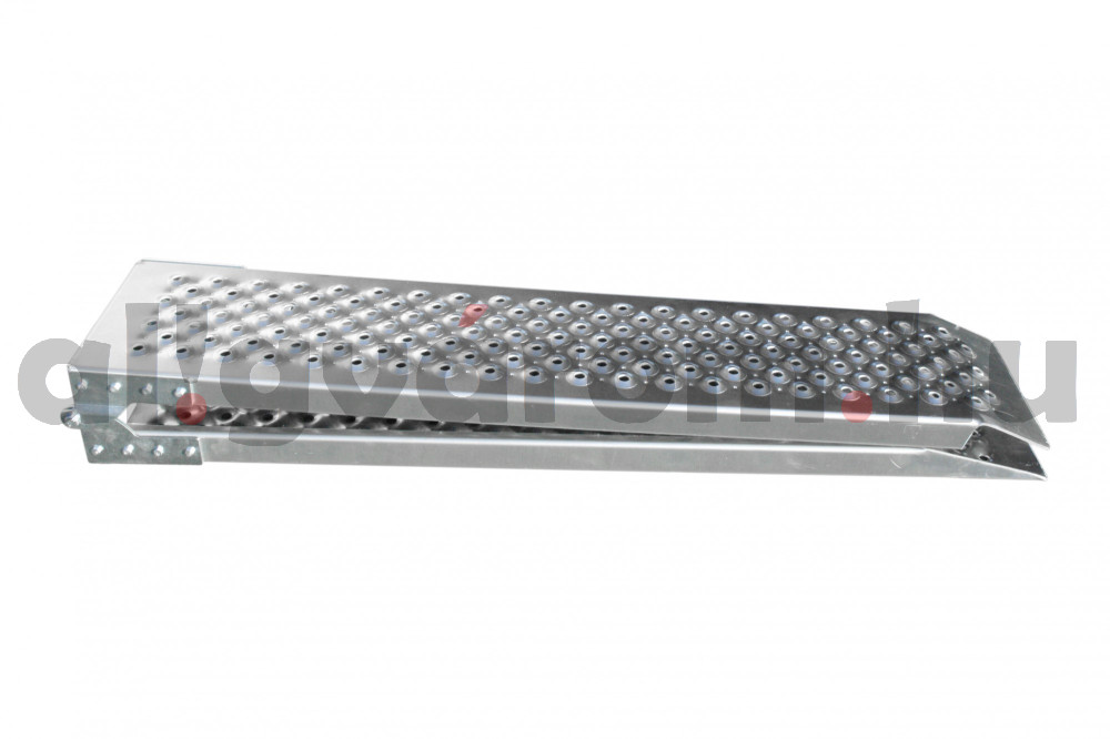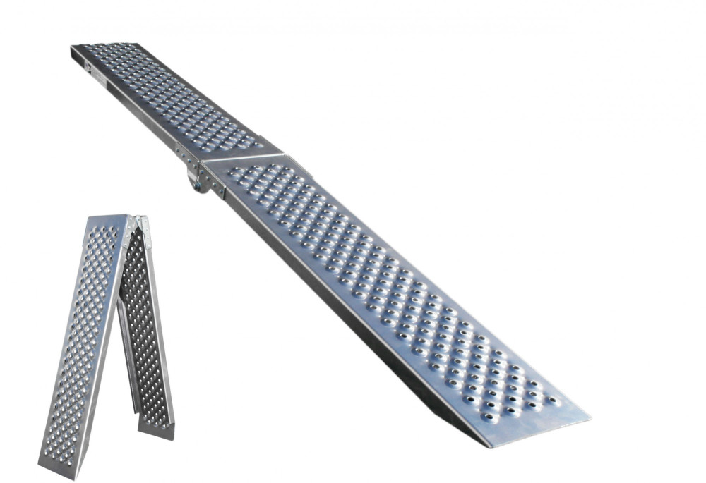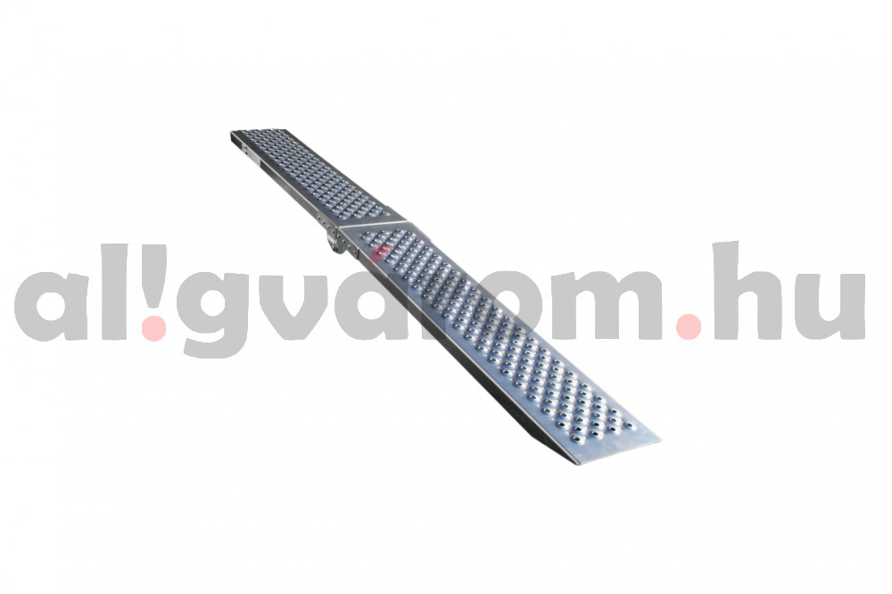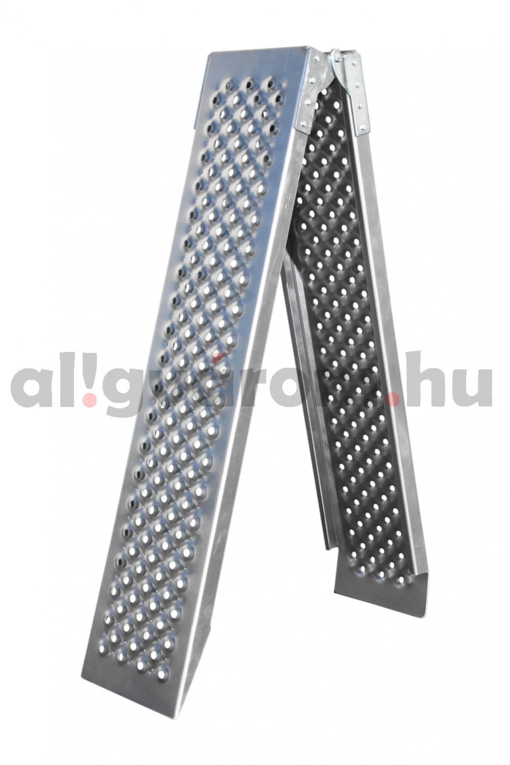 Alumínium rámpa 200 kg maximális terhelhetőséggel. Ez a rámpa ideális motorkerékpárok, robogók, talicskák vagy quadok rakodásához. Természetesen ez a rámpa sok más célra is használható. Ennek a rámpának a különlegessége, hogy a teljes súlya mindössze 5,5 kg, a terhelhetősége pedig akár 200 kg is lehet. Összecsukott állapotban a rámpa hossza 102 cm.