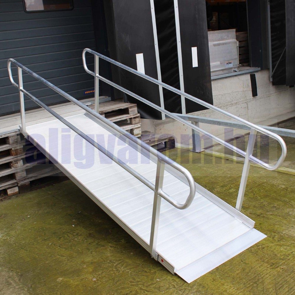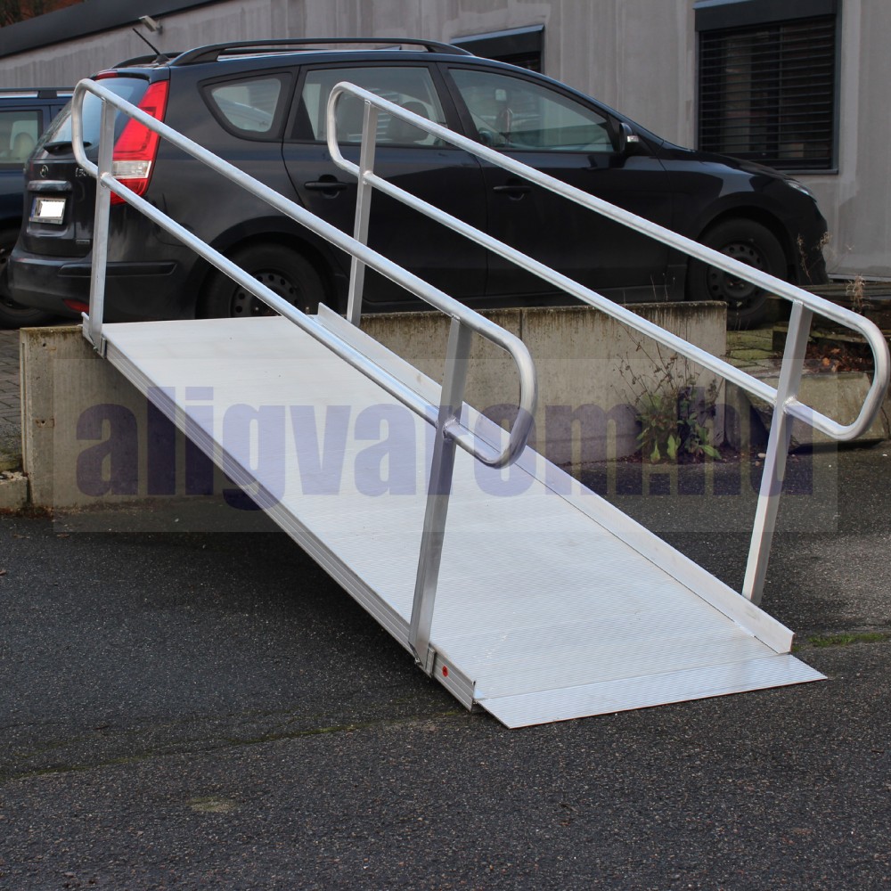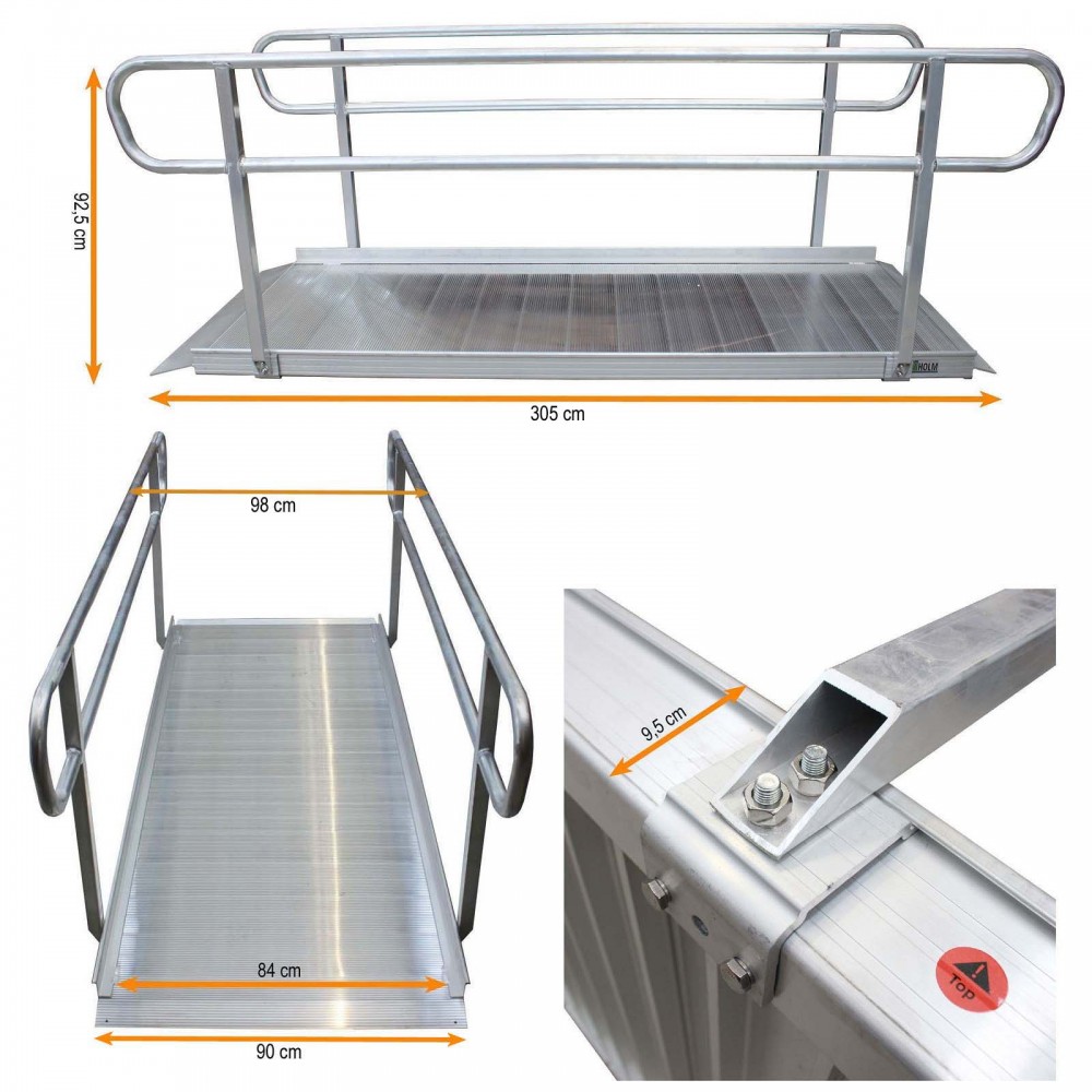 Széles rámpa levehető kapaszkodóval kerekesszék rámpa, rakodó rámpa 400 kg teherbírás 305x90x9,5 cm