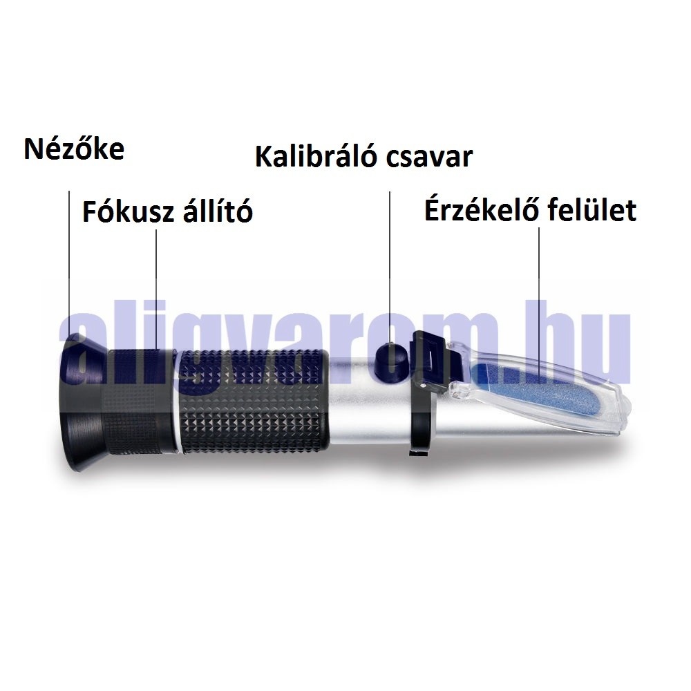 A kalibrálás szükség esetén: cseppentsen desztillált vagy esővizet a prizmára, hogy az egész felületet beborítsa. A a világos és sötét rész határa az alsó vonalra esik (0 fok), akkor tökéletes.