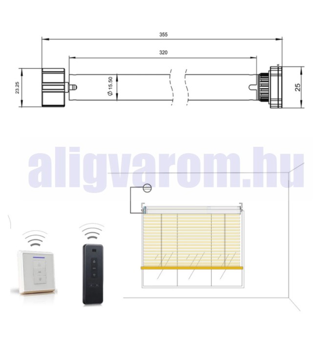 Roló motor, csőmotor távirányítóval vezérelhető 16 csatornás Ø25 mm tengelyhez