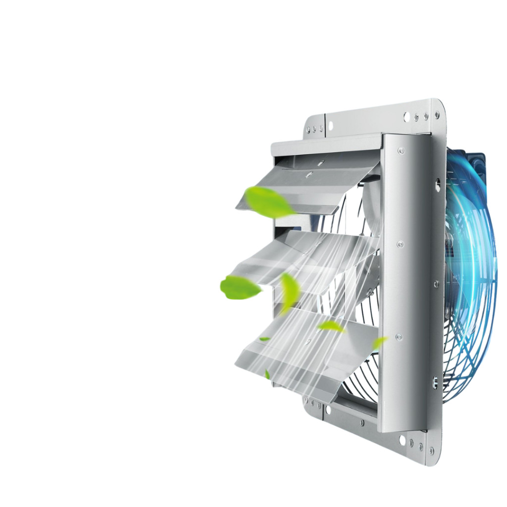 Fali elszívó ventilátor – 305 mm átmérőjű, 45 W teljesítményű, 1800 m³/h légszállítású ipari fali ventilátor automatikus zárólamellával