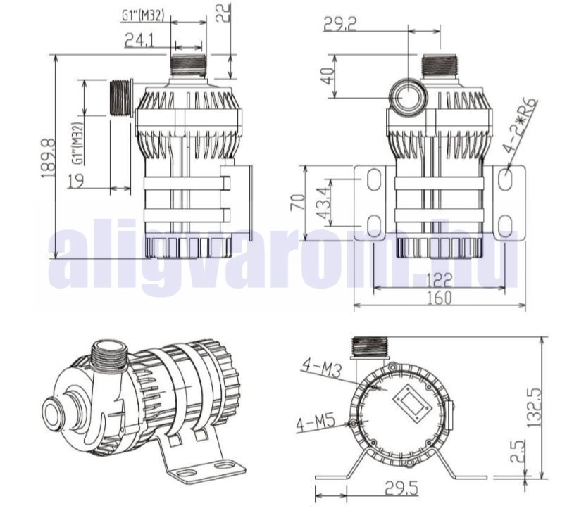 24V 120W 4600 l/h keringető szivattyú, pumpa IP68-vízmentes menetes 1" csatlakozású szolár rendszerhez is 120 °C kenőszivattyú keringető hűtőszivattyú
