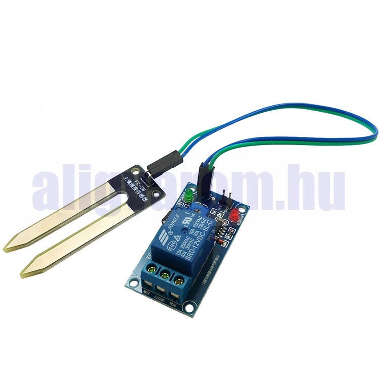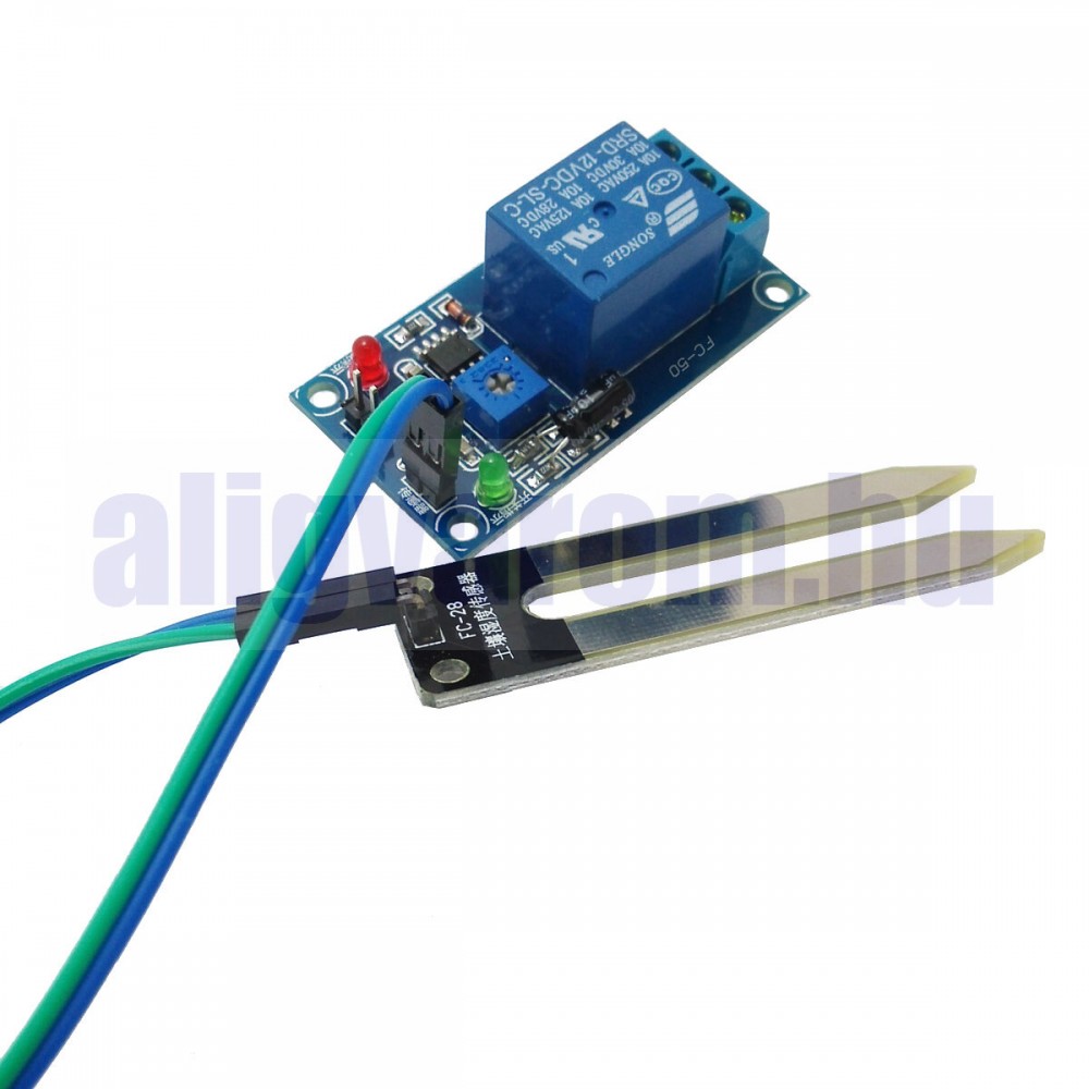 Talajnedvesség mérő automata kapcsoló talajnedvesség tartalom érzékelő elektronika 30V-230V. A beállított szint alatt kapcsolja a relét