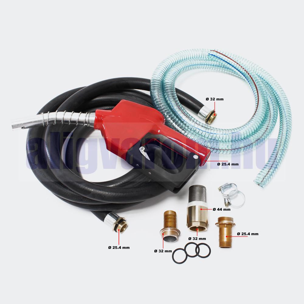 Nagyteljesítményű komplett tankállomás önfelszívó szivattyúval, szívócsővel, töltőcsővel és automata pisztollyal.