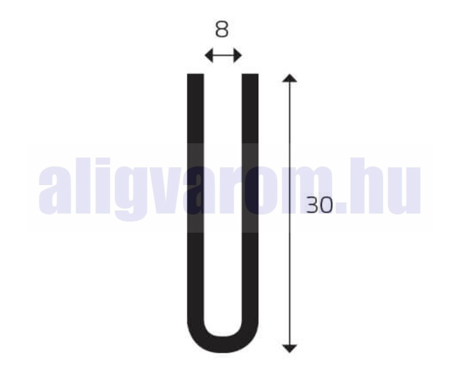 Lemez szegő U profil 30x11 mm perforált lemez keret 8 mm vastag lemezhez rozsdamentes acél 2500 mm szál saválló inox