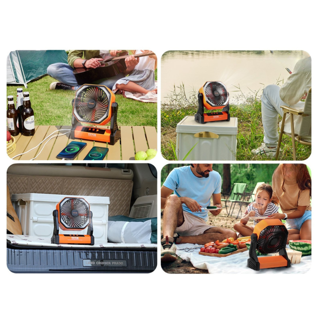 Ez a kompakt méretű, multifunkciós ventilátor a hűtés, világítás és eszköztöltés kombinációját kínálja egyetlen készülékben. A 20 000 mAh-s akkumulátor akár 72 órányi működést biztosít alacsony fokozaton, így ideális kempingezéshez, horgászathoz, kirándulásokhoz vagy otthoni használatra. A négy sebességfokozat, az automatikus és kézi forgatás (akár 360°-ban is), valamint a beépített LED fényforrás három fényerőfokozattal a kényelmes és rugalmas használatot szolgálja.
