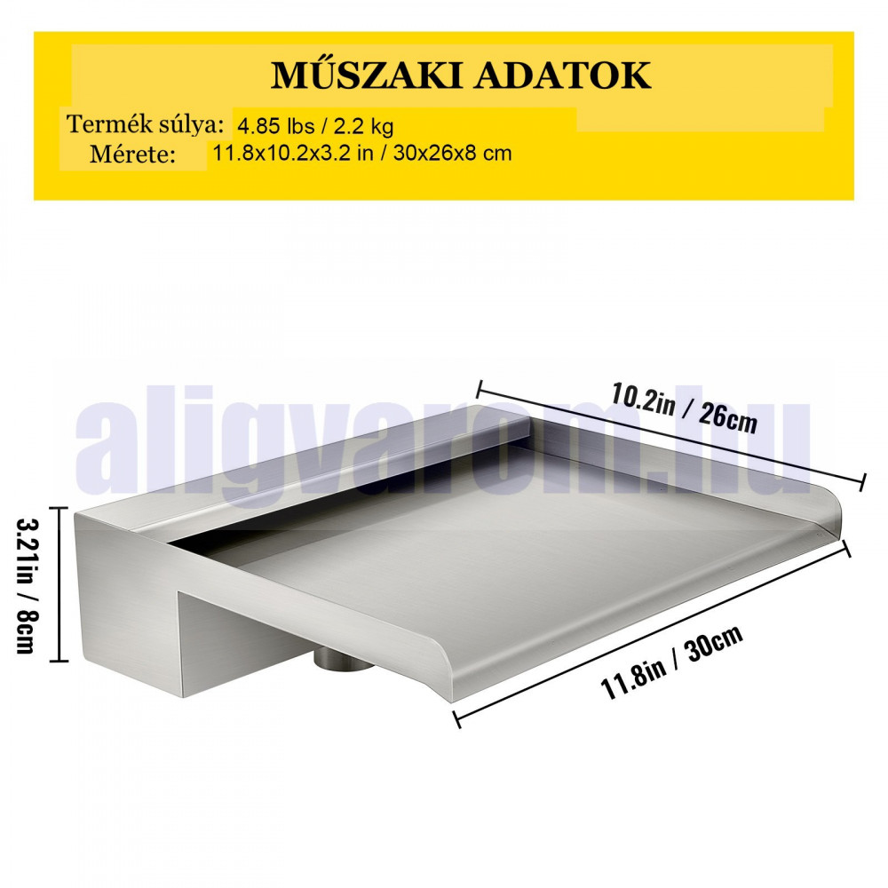Szökőkút házi vízesés 30x26x8 cm rozsdamentes acél kerti tó vízforgató levegőztető szökőkút
