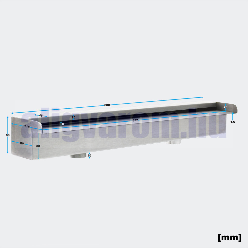 A 60 cm-es méretnek köszönhetően a vízesés könnyen rögzíthető a falakhoz vagy beépíthető a falba.