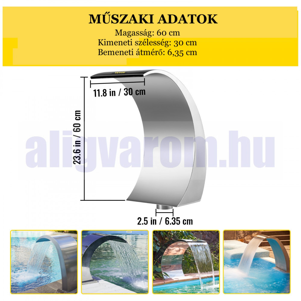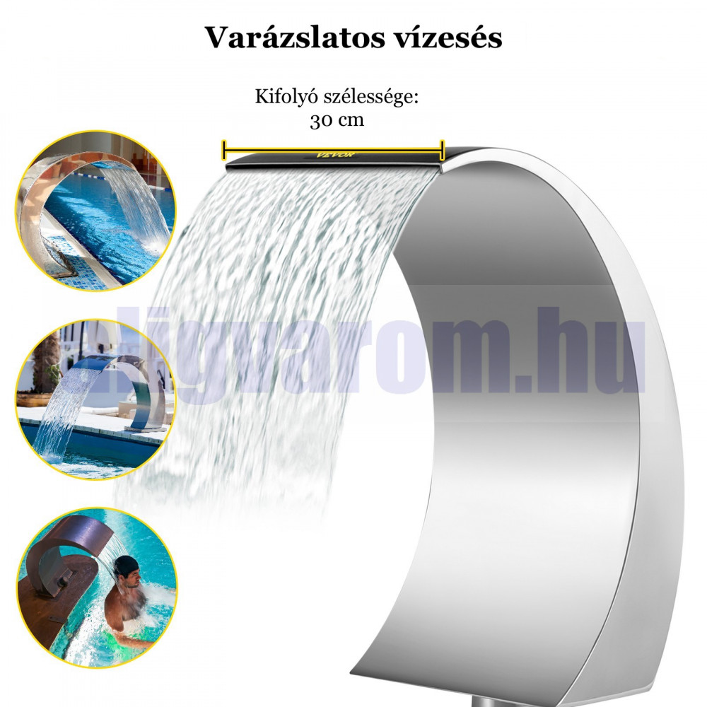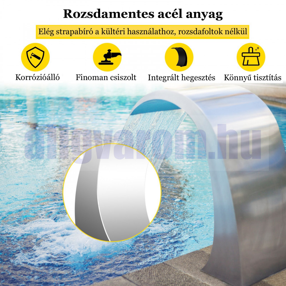 Szökőkút ívelt házi vízesés 30x60x45 cm rozsdamentes acél vízköpő medencéhez