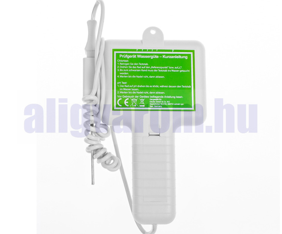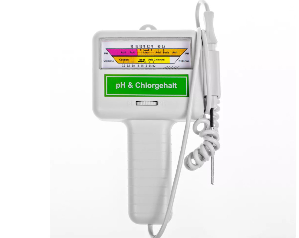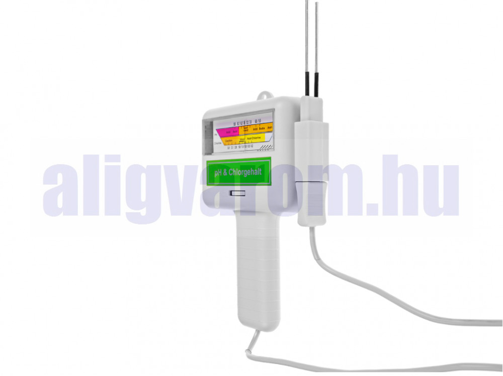 A kényelmes vízvizsgáló gyorsan és egyszerűen megmutatja Önnek medencéje aktuális pH-értékét és kloridtartalmát, így könnyen meghatározhatja a helyes értékeket.