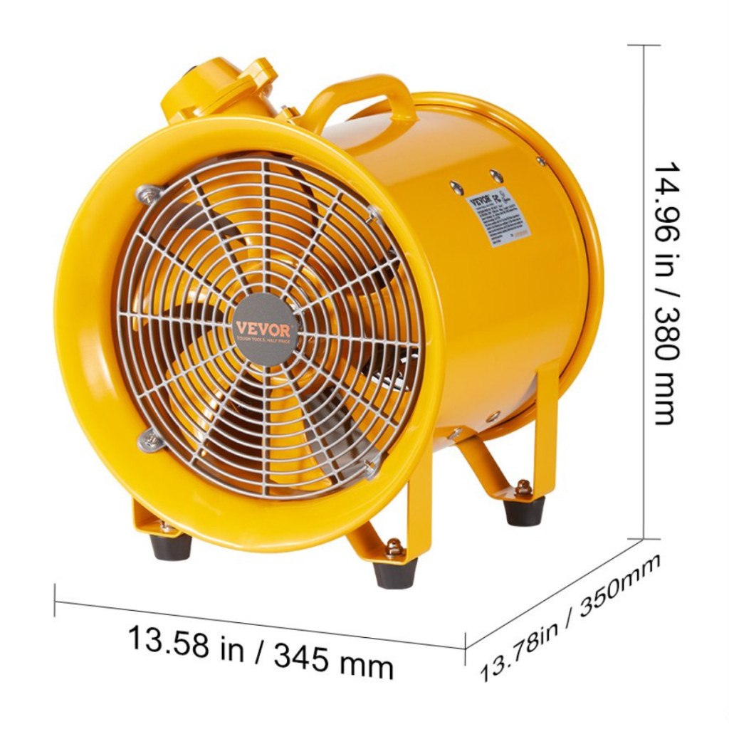 Ez a kompakt méretű, mégis erőteljes ipari építési ventilátor ideális választás minden olyan munkaterületre, ahol gyors, célzott és biztonságos légcserére van szükség. A 300 W-os váltóáramú motor akár 1942 CFM (916 liter/másodperc) légszállításra képes, ami tökéletes füst, szag, meleg levegő vagy szennyeződések gyors eltávolításához. A ventilátor IP44 védettséggel, túlmelegedés elleni védelemmel és ATEX robbanásbiztos tanúsítvánnyal rendelkezik, így zord vagy veszélyes környezetben is használható. A csúszásmentes gumitalpak és a hordozófogantyú megkönnyítik a mozgatást és biztonságos pozicionálást akár pincében, csatornában vagy szűk helyeken is.