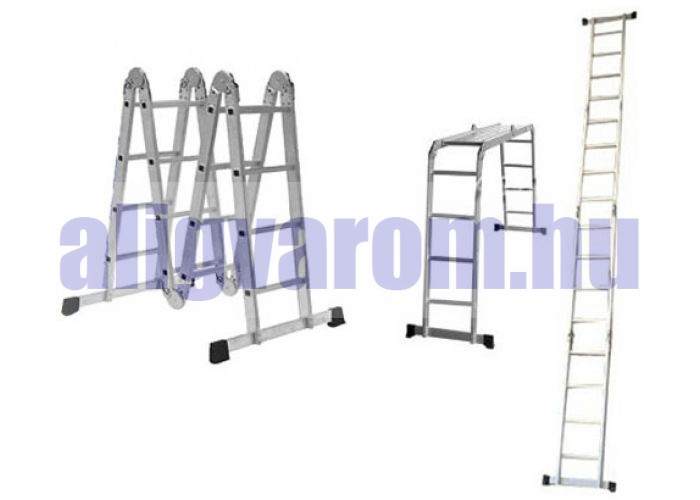 Összecsukható létra és állvány 3,7 méter magas 4 részes összehajtható 4x3 létrafok. Összecsukva csak 100 cm hosszú!