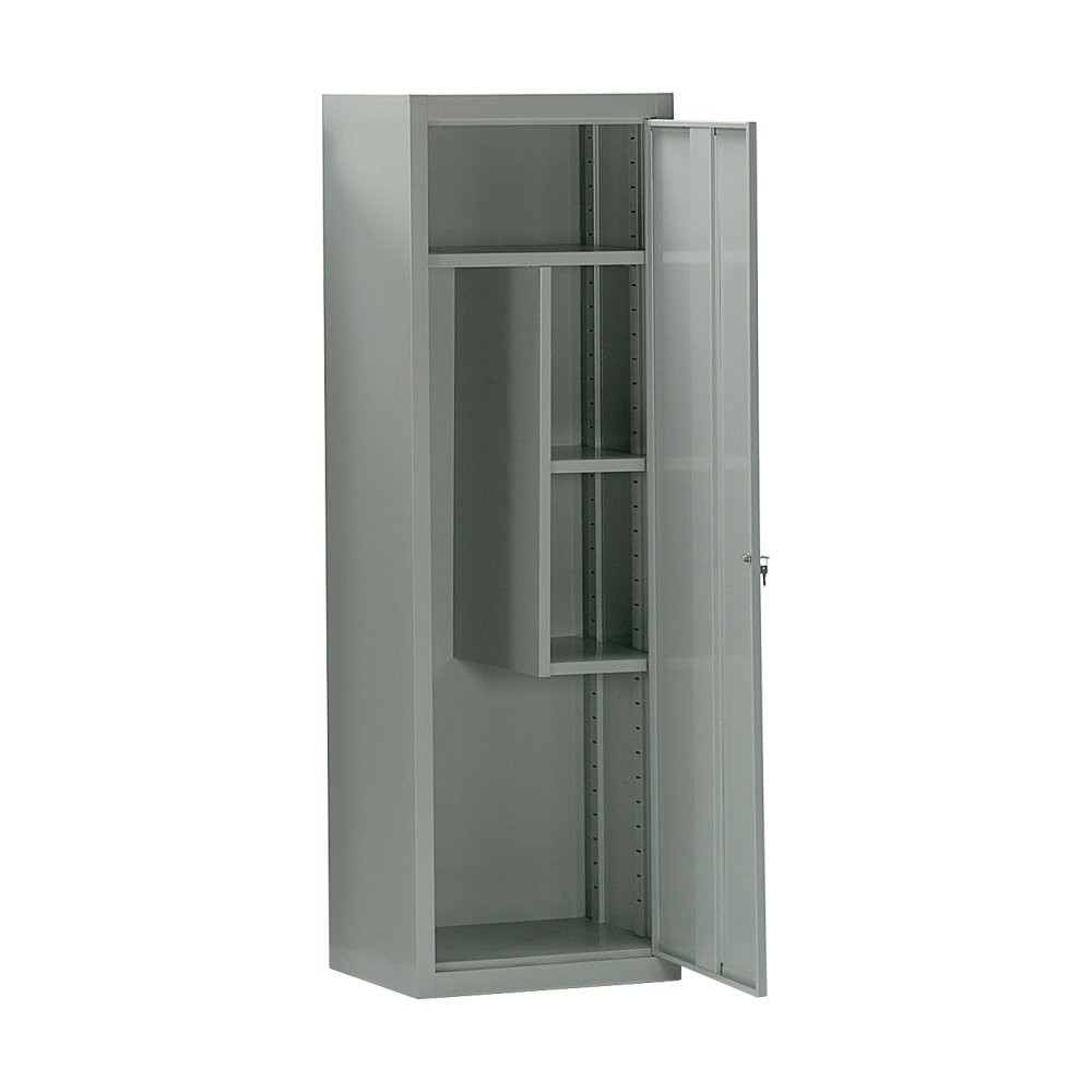 Szerszámok és anyagok tárolására szolgáló acélszekrény. Az ipari acélszekrény rendkívül masszív szerkezet, egy közpoti függőleges elválasztóval, egy nagy és 2 kisebb polccal, megerősített ajtók kulccsal zárhatóak. Öltözőszekrénynek is kiváló.