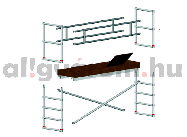 Könnyű és rendkívül erős, alumíniumkeretből és csúszásmentes és időjárásállóan festett falapból készült szerelőállványhoz tartozó munkaplatform.