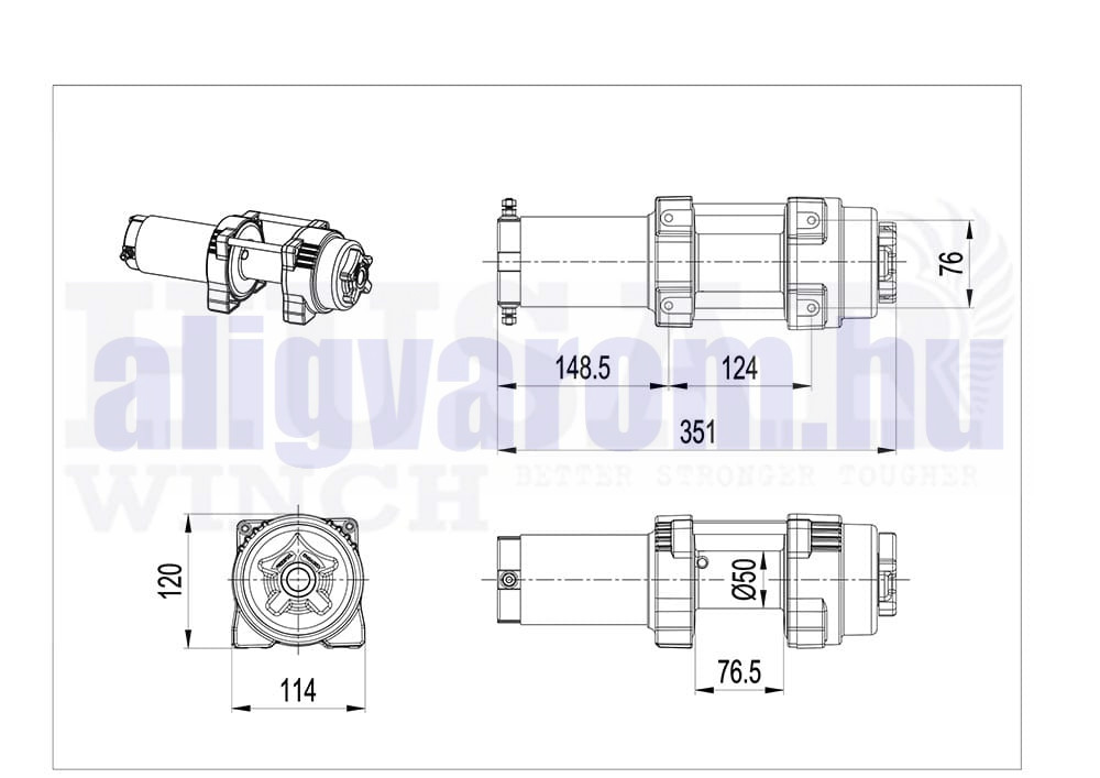 Quad-ra és egyéb terepjáróra alkalmas nagy teherbírású elektromos csörlő.