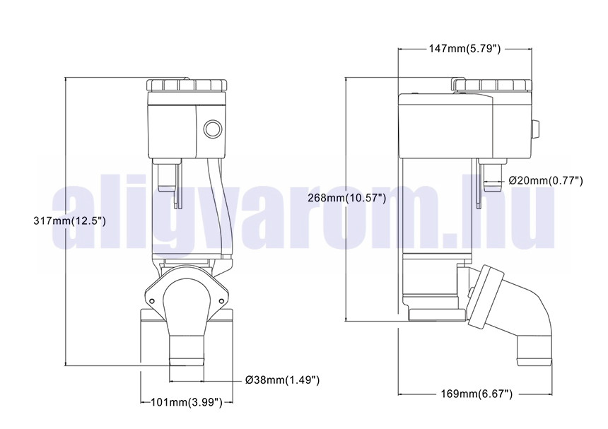 Wc kézipumpa átalakító Zagyszivattyú 12V 240W 0,6 m macerátor hajó, lakóautó