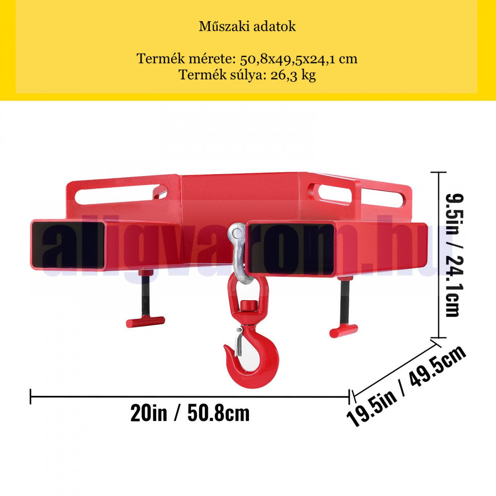 Targonca emelőhorog 3 tonna teherbírású targoncavillára húzható daruhorog 2 villára húzható