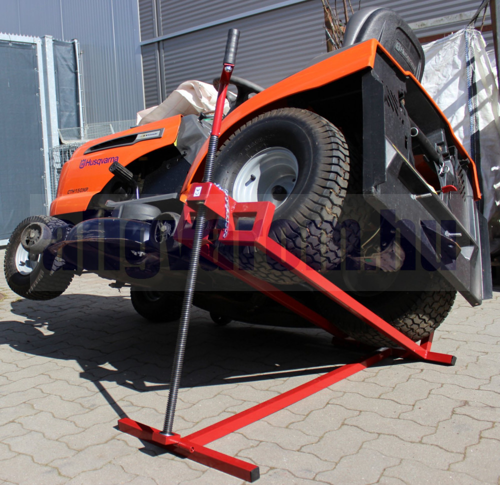 Ez a fűnyíró traktor emelő megkönnyíti a fűnyírás utáni tisztítást. Egyszerűsíti a javítási vagy karbantartási munkákat is, például a fűnyírófedél, a kések vagy az ékszíjak esetében.
