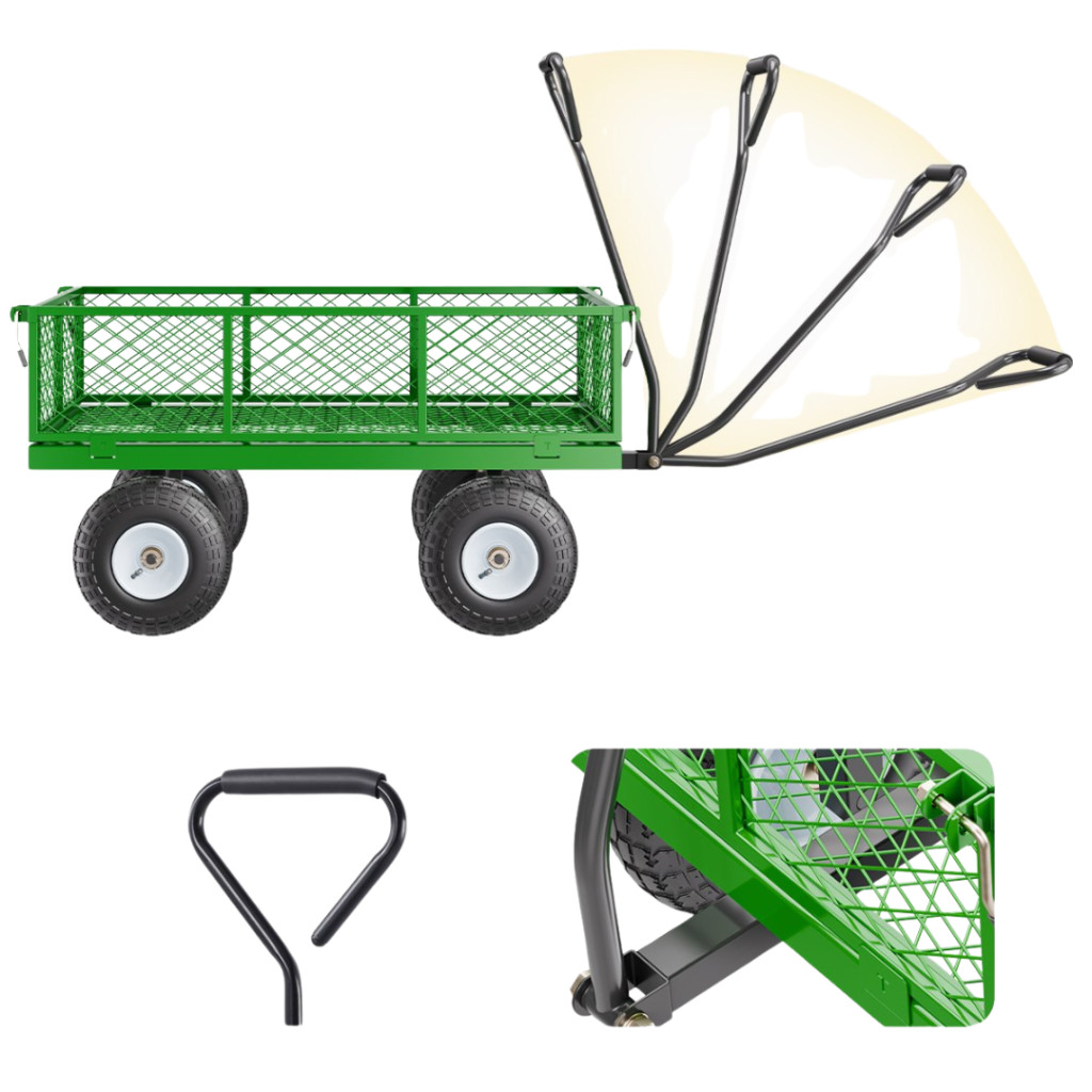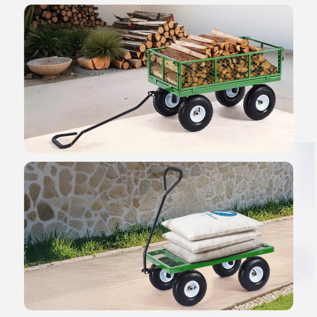 408 kg teherbírású 2 az 1-ben kerti szállítókocsi 360°-ban forgó kerekekkel