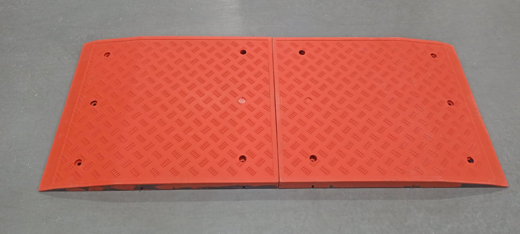 Forgalom lassító párna, fekvőrendőr  köztes elem, 65 mm magas, 900 mm széles, 750 mm hosszú, forgalom lassító küszöb B68 piros színben