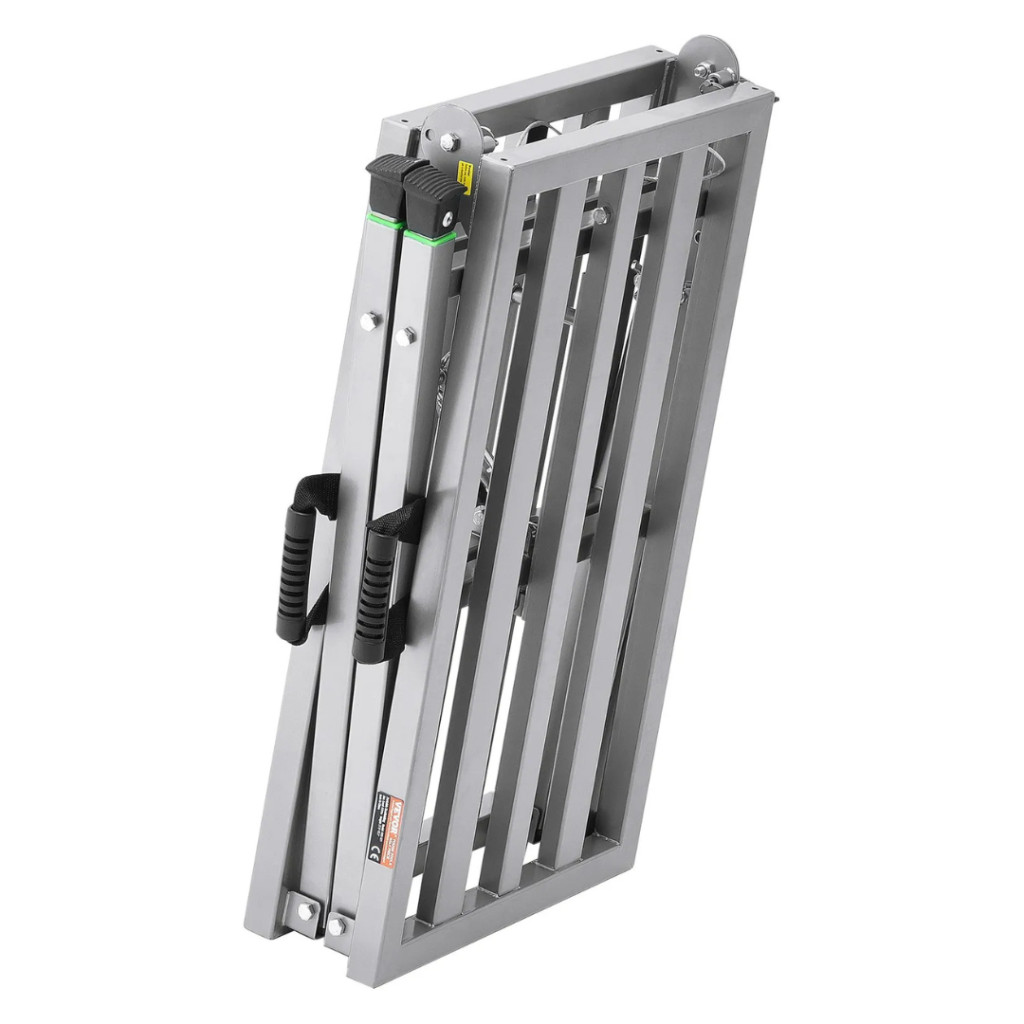 Összecsukva a munkaplatform mérete mindössze 725 × 495 × 133 mm, így kis helyen is könnyen elfér. Súlya csupán 15,65 kg, ami könnyű szállítást és mozgatást tesz lehetővé. Kompakt kialakítása miatt egyszerűen tárolható akár műhelyben, garázsban vagy szerszámoskamrában.