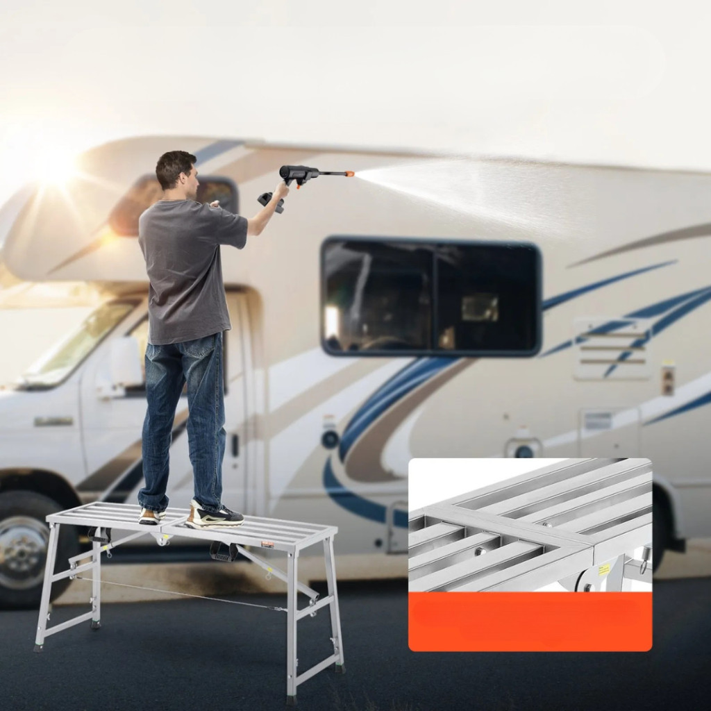 A munkaplatform biztonságos és stabil megoldást nyújt minden olyan feladathoz, ahol magasban kell dolgozni. Legyen szó autómosásról, festési munkákról, szerelésről vagy épületfelújításról, ez a strapabíró állítható munkaállvány ideális választás a kényelmes és biztonságos munkavégzéshez.