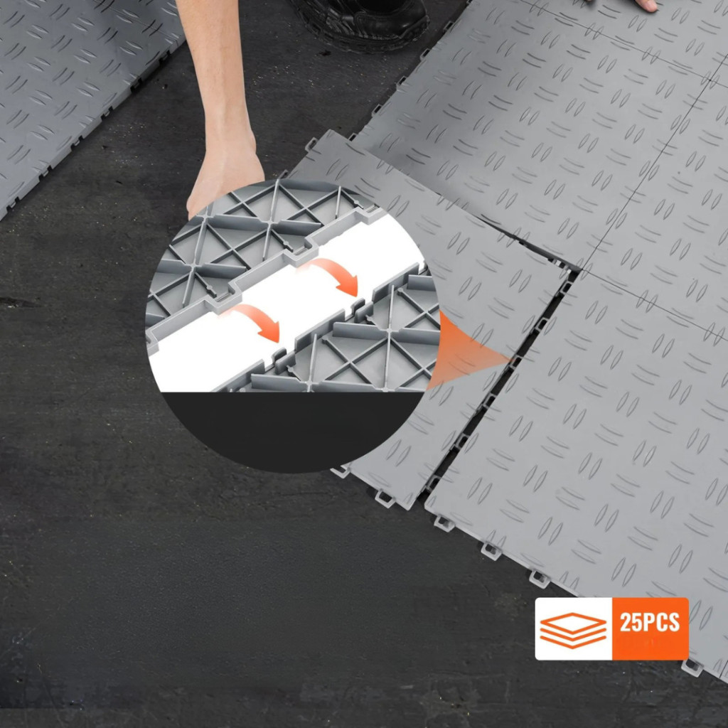 A moduláris garázspadló burkolólapok egyszerre kínálnak biztonságot, tartósságot és stílust. Egyszerű telepítésüknek köszönhetően ideális választás mind a házi barkácsolók, mind a professzionális felhasználók számára. Az ezüst szín nemcsak modern megjelenést kölcsönöz, hanem megkönnyíti a kiömlött folyadékok észlelését, így segíti a tisztaság fenntartását is.