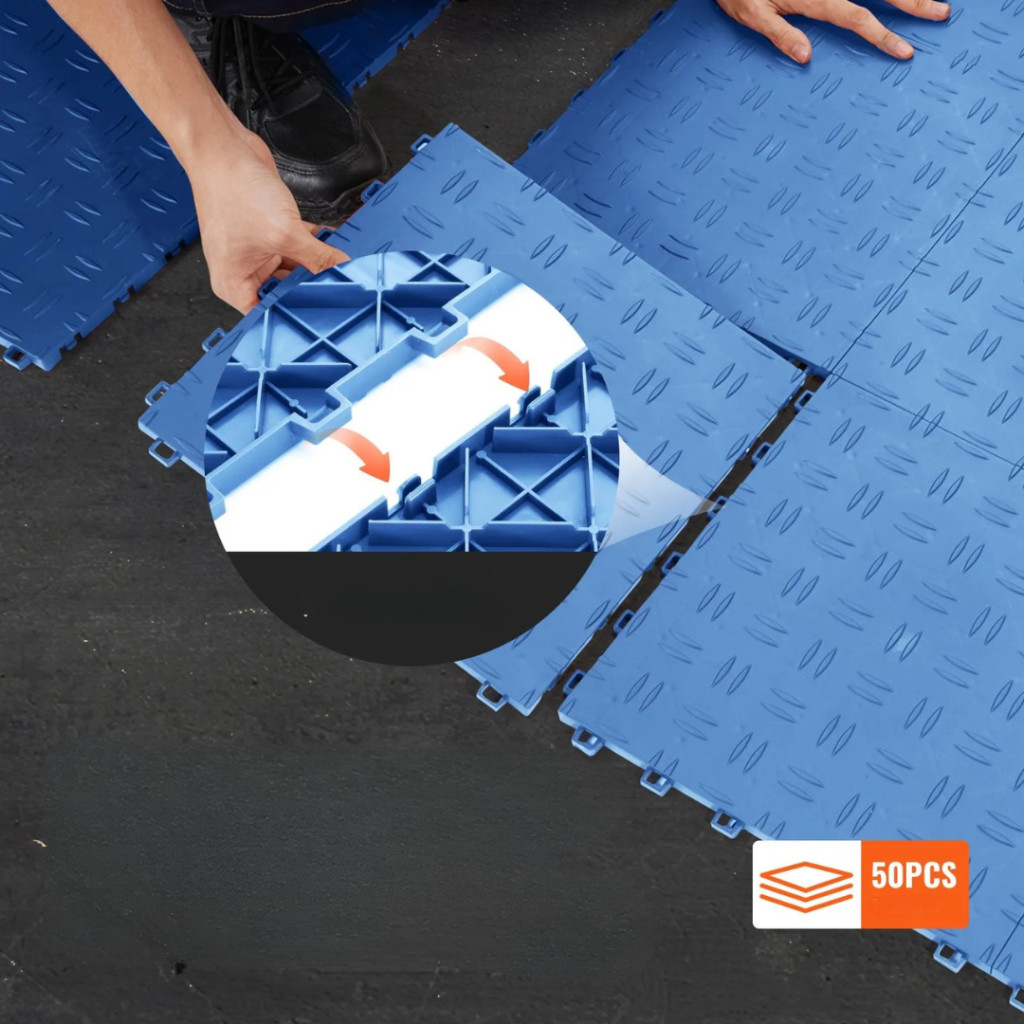 Garázspadló burkolólap 50 db-os készlet 305x305x13,4 mm ipari minőségű, csúszásmentes, kék színben