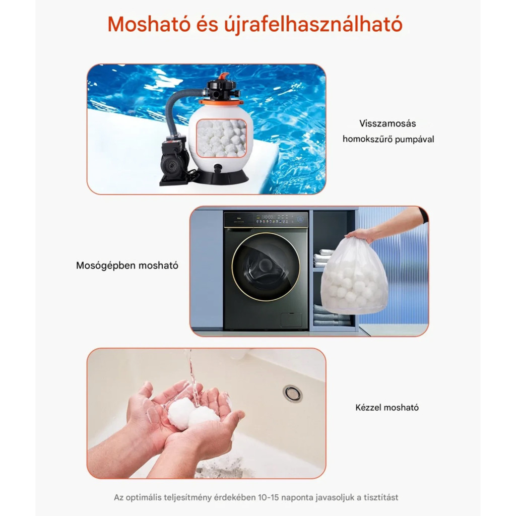 A szűrőlabdák medencéhez könnyen tisztíthatók: