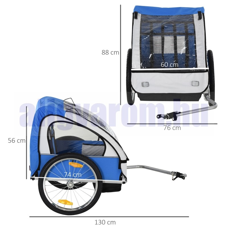 Kerékpár utánfutó 130x76x88 cm gyermek utánfutó 2 gyermek számára alkalmas