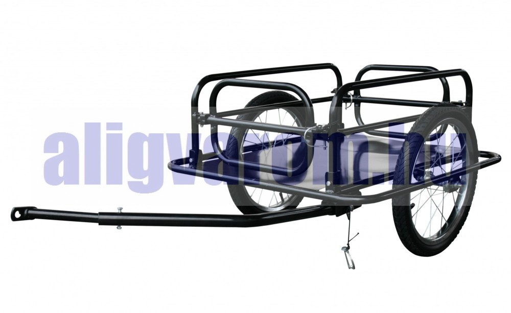 Kerékpár utánfutó rácsos áruszállító 50 kg teherbírás fúvott gumi, összecsukható