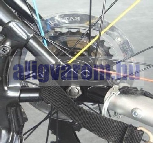 A kerékpár hátsó tengelyéhez rögzíthető, de könnyen le is oldható.