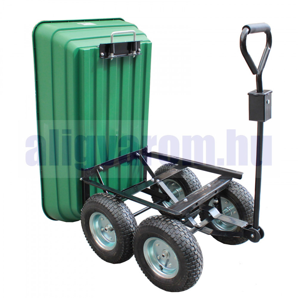 A kormányzott tengelyű, golyóscsapágyazott pneumatikus kerekeknek köszönhetően még a nehéz, akár 400 kg súlyú áruk is könnyedén szállíthatók. Természetesen nem csak az olyan kerti termékek, mint a levelek, komposzt, föld, műtrágya vagy fa tartoznak ide. Italos ládák, kövek vagy hasonlók is szállíthatók vele.