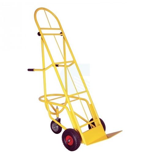 A kézikocsi tartós, hegesztett fémcsővel és megerősített kerettel rendelkezik, biztosítva a hosszú élettartamot és a megbízható teljesítményt.