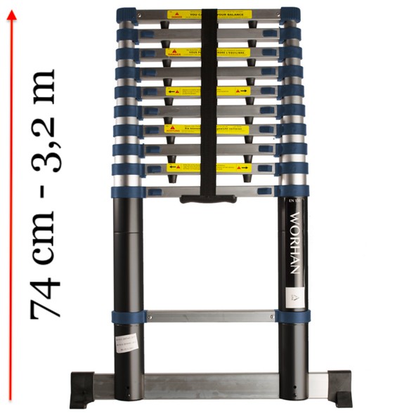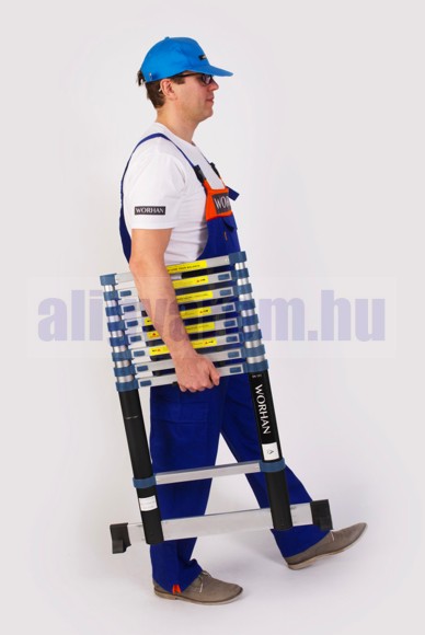 3,2 m magas, kihúzható létra, teleszkópos alumínium létra 74 cm-re összecsukható. Széles támasztólábbal és ujjbecsípődés védelemmel