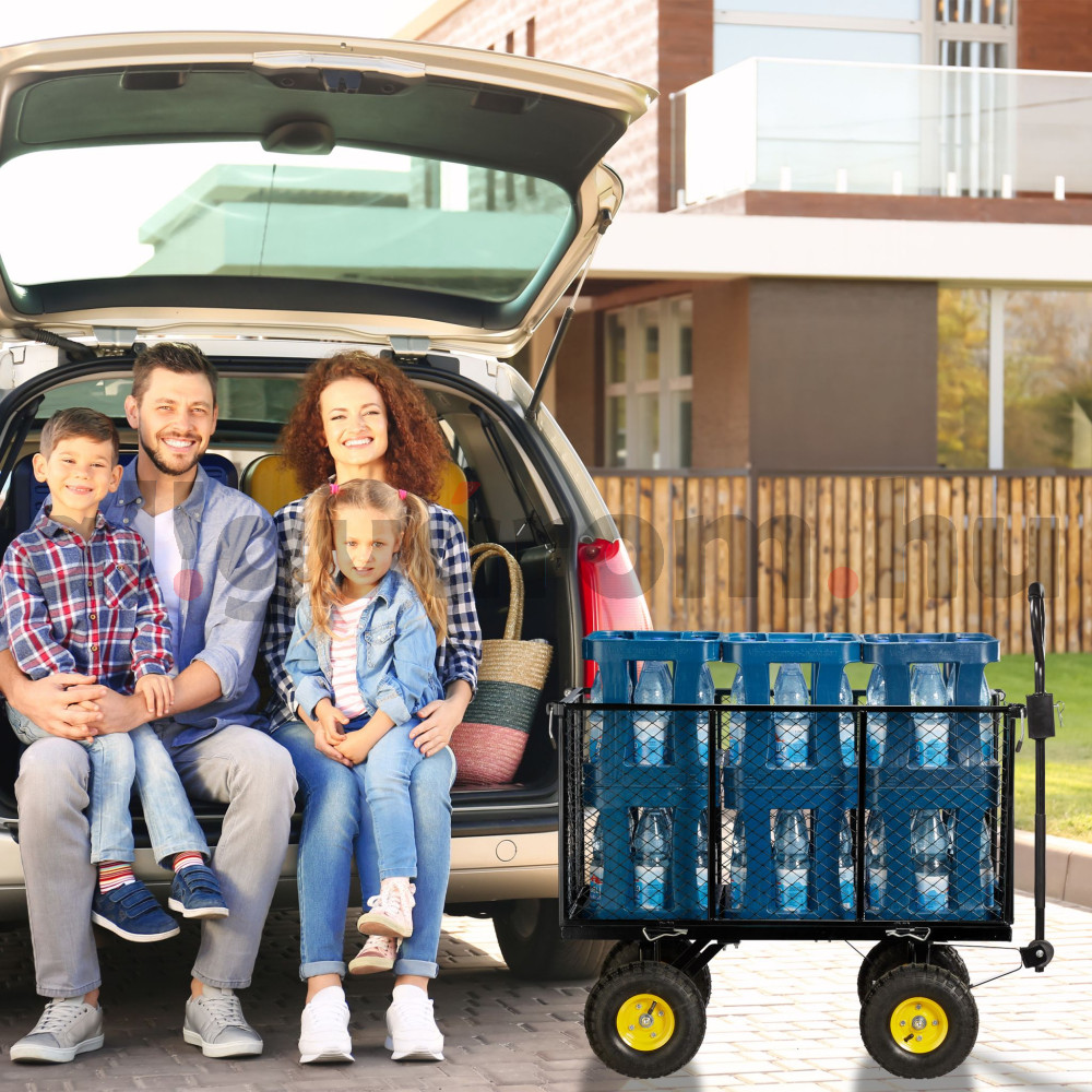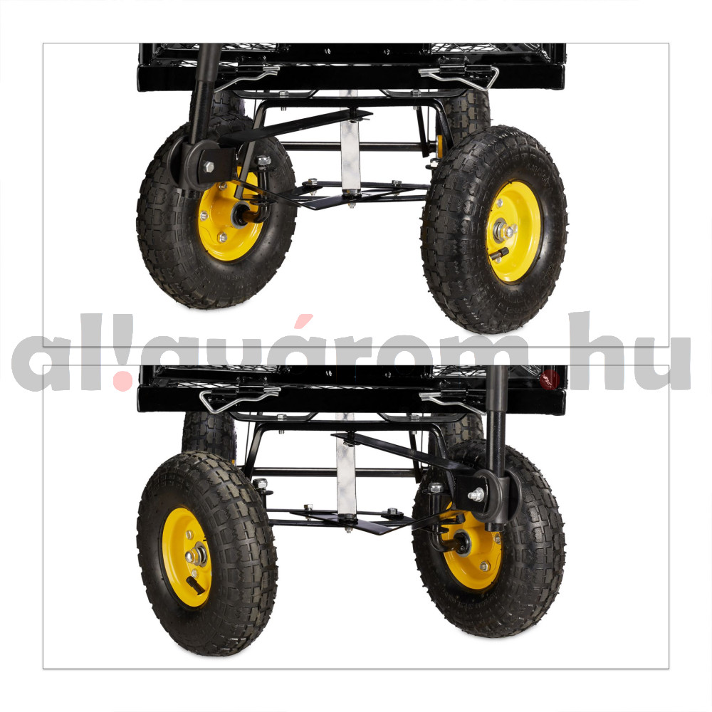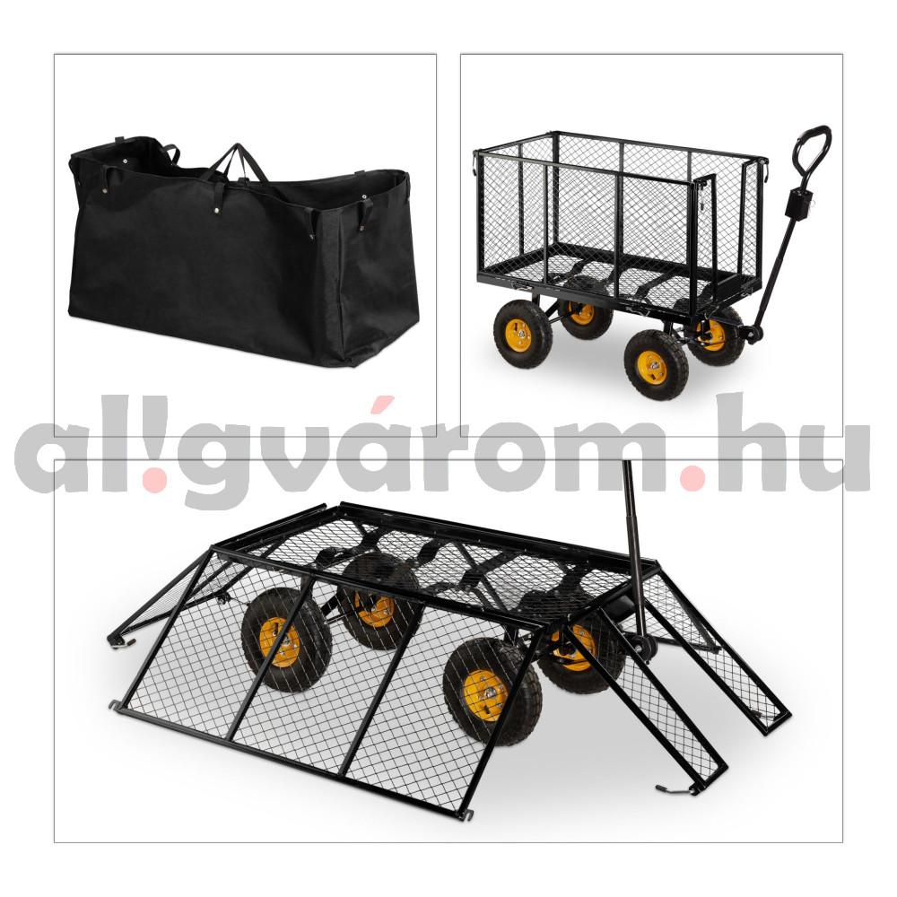 Kerti kocsi 83x51x113 cm húzható acél kézikocsi 500 kg teherbírású lenyitható oldalfalakkal szállítókocsi platós kocsi