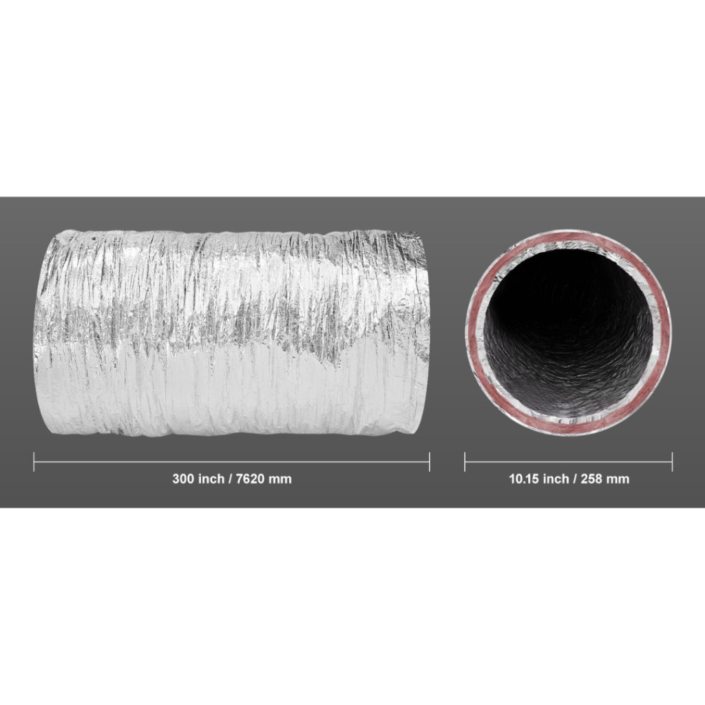 Ez a 108 mm átmérőjű, 7,62 méter hosszú, hőszigetelt aluflex cső kiváló választás olyan helyeken, ahol elsődleges szempont a hőveszteség csökkentése, a kondenzáció elkerülése, valamint a zajcsillapítás. A háromrétegű kialakítás – alumíniumfólia, PET és üvegszálas megerősítés – R-6 szintű hőszigetelést biztosít, amely megfelel az ipari elvárásoknak is.
