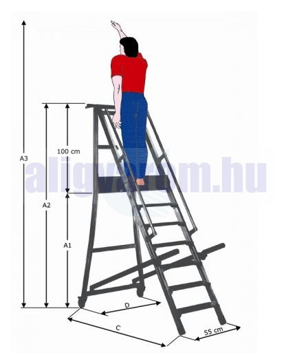 Komissiózó létra lépcsős gurítható alumínium rakodó létra 10 lépcsőfokkal 2,5 méter