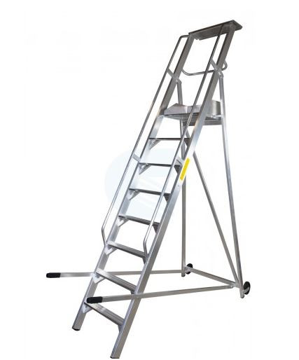 Komissiózó létra lépcsős gurítható alumínium rakodó létra 11 lépcsőfokkal 2,75 méter
