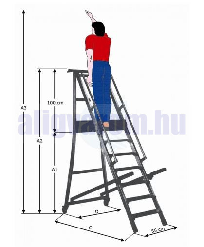Komissiózó létra lépcsős gurítható alumínium rakodó létra 12 lépcsőfokkal 3 méter