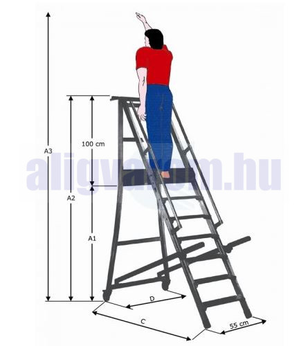 Komissiózó létra lépcsős gurítható alumínium rakodó létra 3 lépcsőfokkal 0,75 méter